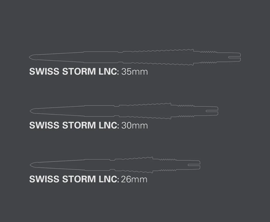 Target Swiss Storm LNC Point 30 mm nooleotsad ühendavad populaarse Storm-seeria profiili ja Swiss Point vahetussüsteemi, pakkudes suurepärast kontrolli ja mugavat kasutamist.